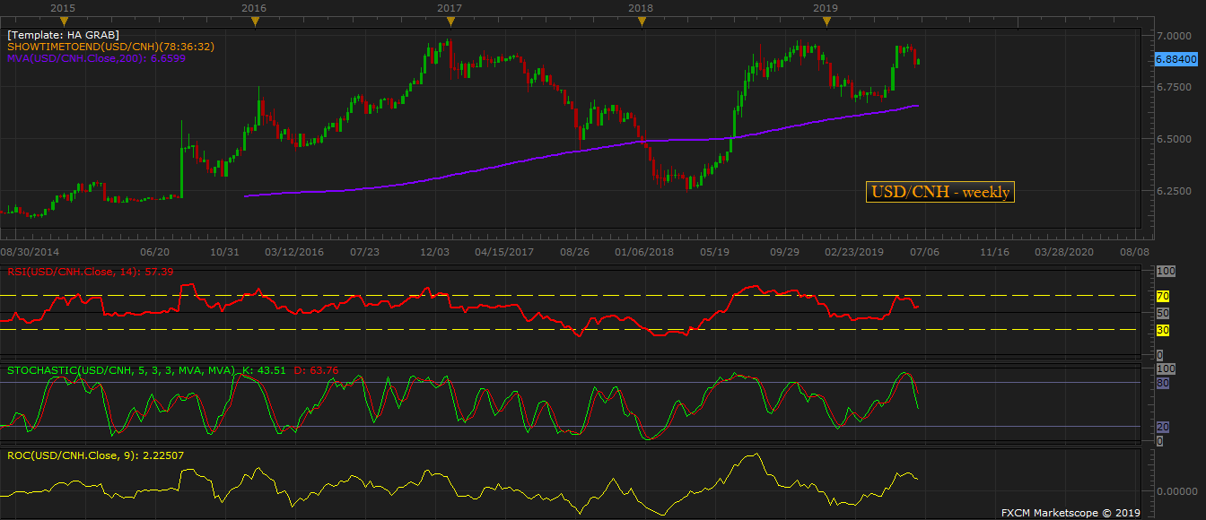 We expect the ongoing trade dispute between the United States and China to weigh negatively on yuan.