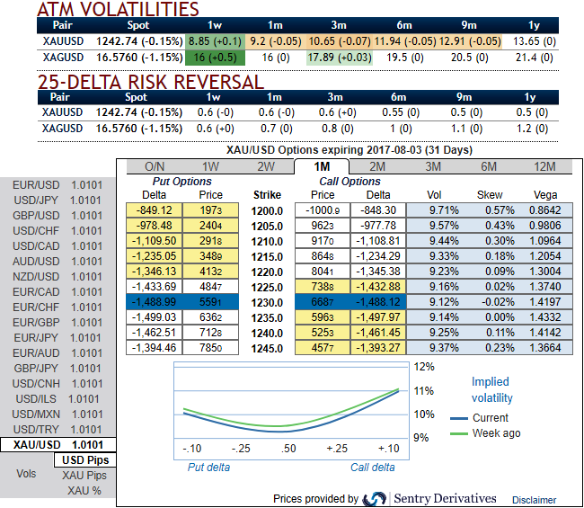 Comex gold futures were at $1,234.67 a troy ounce by 10.58 GMT, down $7.63, or around 0.62%. It was the lowest level since May 16.