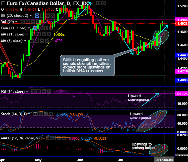 Although today’s trend seems to be little edgy as it is heading towards a stiff resistance at 1.4984 levels. But bullish sentiments have been robust on healthy major uptrend amid minor hic-ups.