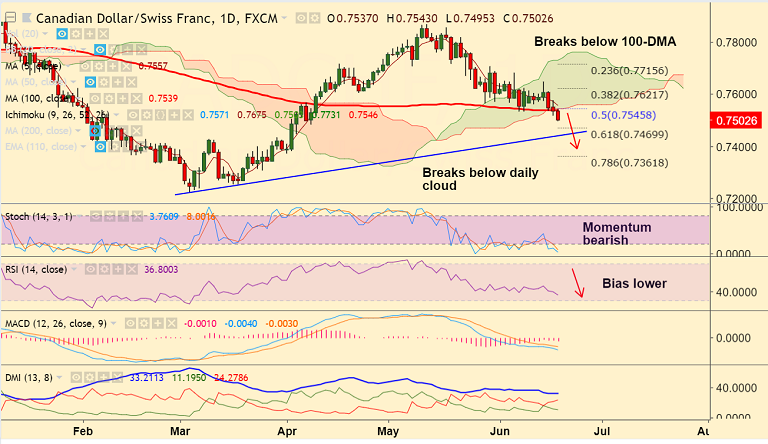 - The pair trades with a bearish momentum and break below daily cloud has raised scope for further downside.