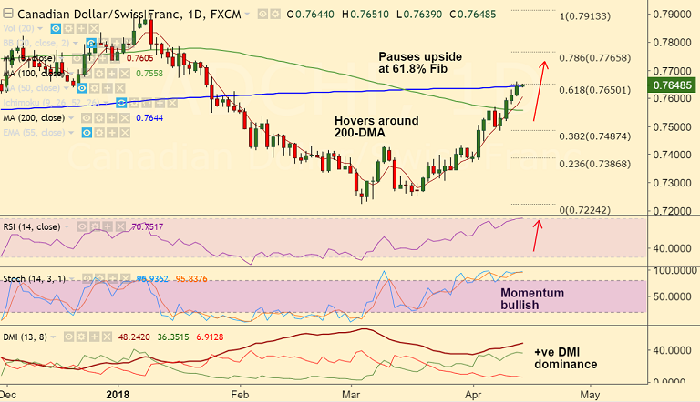 Support levels - 0.7644 (200-DMA), 0.76, 0.7558 (100-DMA), 0.7487 (38.2% Fib)