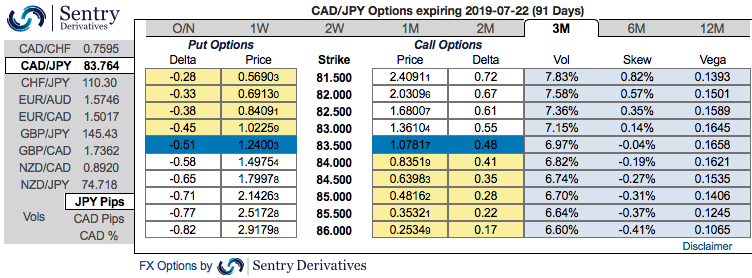 Positively skewed CADJPY IVs of 3m tenors have still been signaling bearish risks, the hedgers’ interests to bids for OTM put strikes up to 81.500 levels indicating downside risks in the medium terms. Please observe above technical chart for minor upswings in the short run that are to be capitalized for interim longs, while upholding short hedge as the major downtrend remains intact. Accordingly, we advocated options straps strategy to address both short-term upswings and major downtrend.