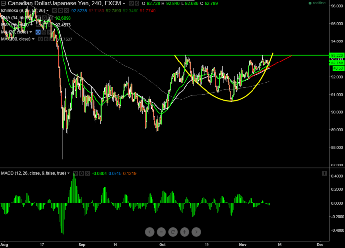 CAD/JPY faces strong resistance around 93.25 and any bullishness can be seen only above 93.25.