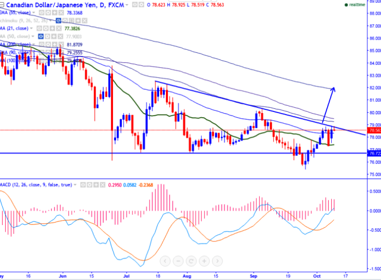 - CAD/JPY has taken support near 10- day MA and started to jump from that level. It is currently trading around 78.58.