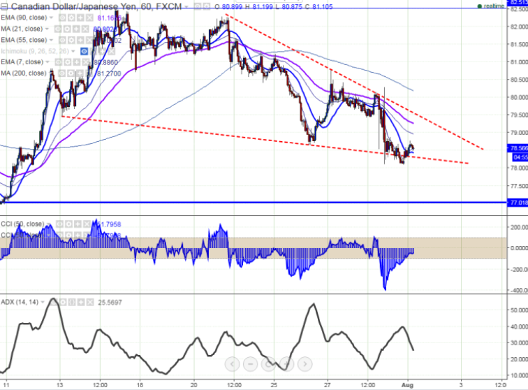 - On the lower side, minor support is around 78 and any violation below targets 77.25 (161.8% retracement of 78.65 and 80.77)/76.81.