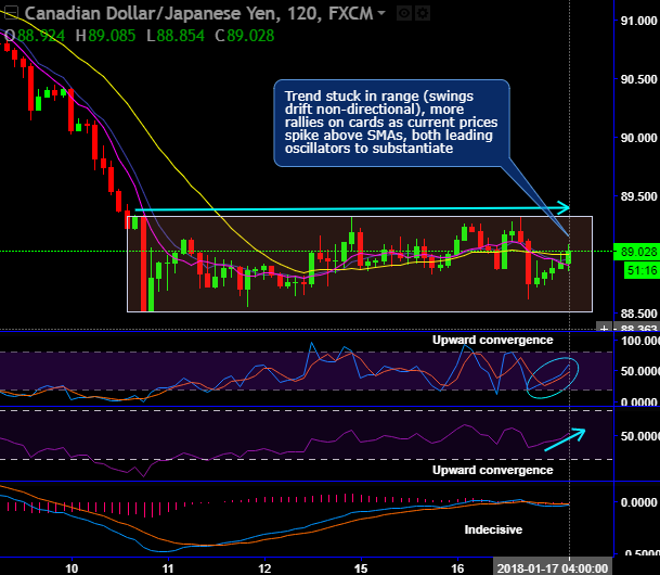 The minor trend is stuck in a range on 2H chart, the swings drift non-directional on this timeframe, more rallies seem to be on cards as the current prices spike above SMAs, while both leading oscillators to substantiate this bullish stance by converging upwards.