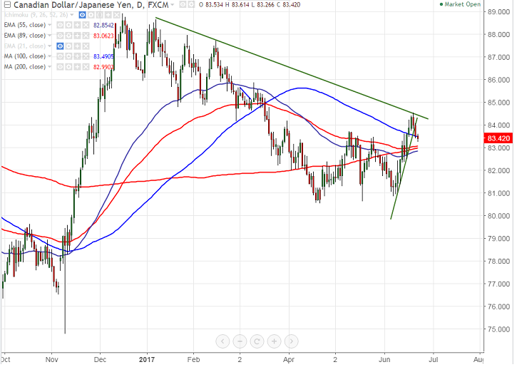 - On the higher side, major resistance is around 84.55 and any break above targets 85.89 (Mar 10th 2017 high)/86.17.