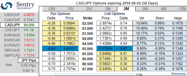 We bought a 2m 87.100 CADJPY put, Reverse Knock-outs 83.100 for 14bp in mid-April while squaring off CADJPY positions, simultaneously, the short hedges were also suggested.