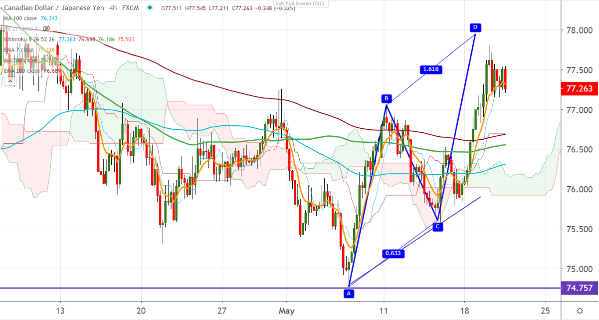 The near term resistance is at 78.18, any violation above targets 78.50/79.23/80. On the flip side, immediate support is around 76.70 (200-4H MA) and any indicative break below will drag the pair down till 76.30/75.80/75.57. Significant trend continuation only below 74.78.