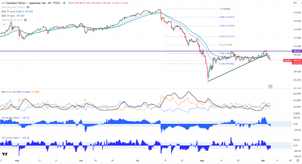 CADJPY lost its shine after the BOC monetary policy. It hit a low of 106.60 and is currently trading around 106.68.