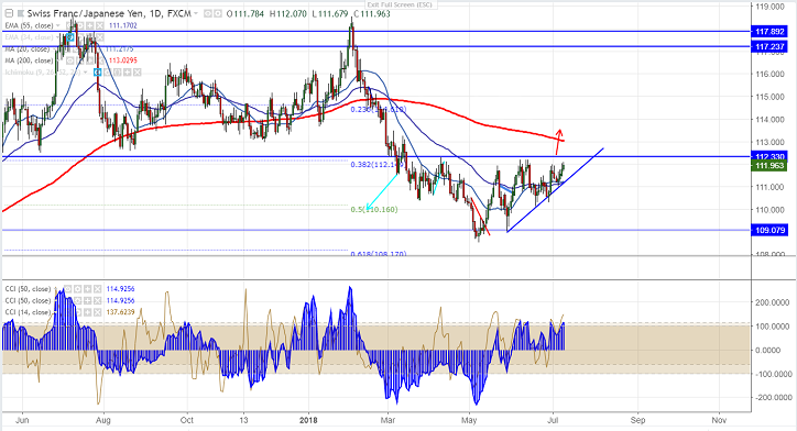 - CHFJPY has once again jumped sharply from the low of 110.30 (previously market jumped after hitting low of 110.11 (Jun 19th 2018)). The pair recovered more than 150 pips and hits intraday high of 112.07.