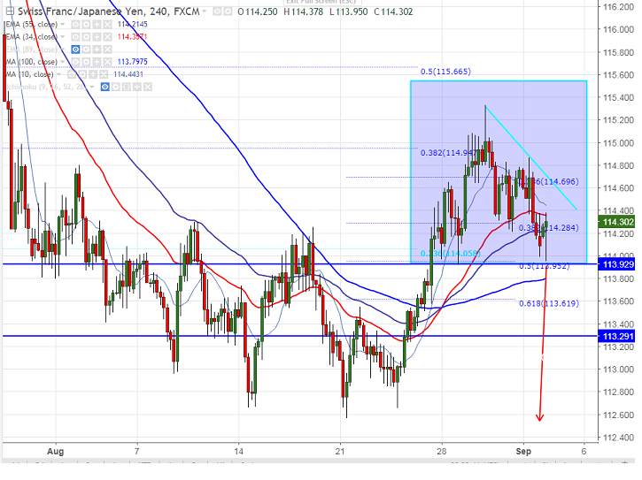 - On the higher side, minor resistance is around 114.40 and any above that level will take the pair till 115/115.32 (Aug 30th low)/115.66/116.