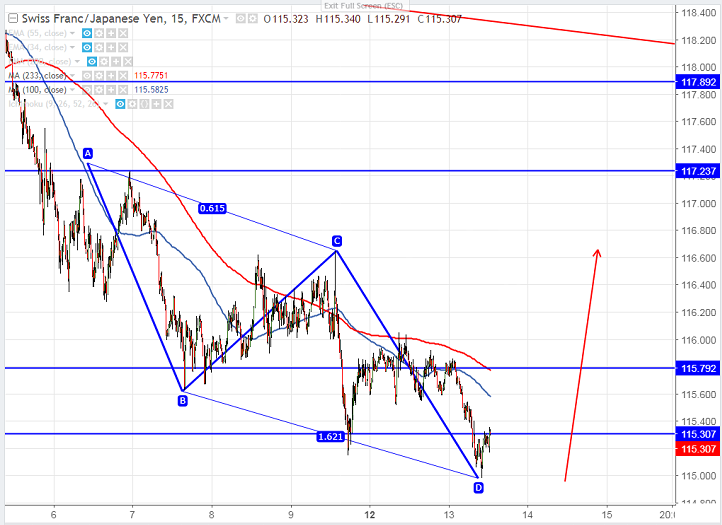 - CHF/JPY is trading weak for past one week. The pair declined almost 350 pips from the high of 118.55 made on Feb 2nd 2018. It hits low of 114.98 and is currently trading around 115.28.