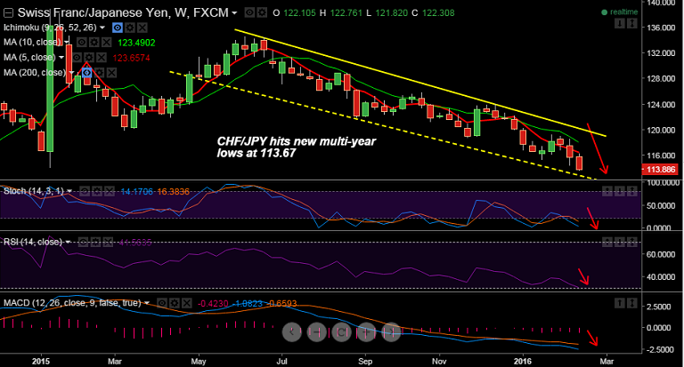 FxWirePro: CHF/JPY hits new multi-year lows at 113.67, further downside could test 111 levels