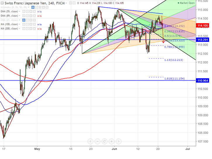 - The major trend line resistance is around 114.73 (trend line joining 115.16 and 115.04) and any break above confirms further bullishness, a jump till 155.38/116.59 (161.8% retracement of 115.03 and 112.50).