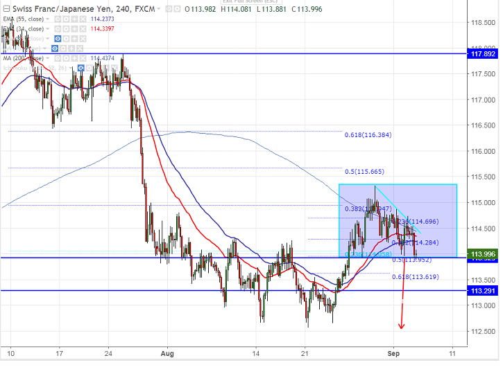 - On the higher side, minor resistance is around 114.78 (61.8% retracement of 115.38 and 113.95) and any above that level will take the pair till 115/115.32 (Aug 30th low)/115.66/116.