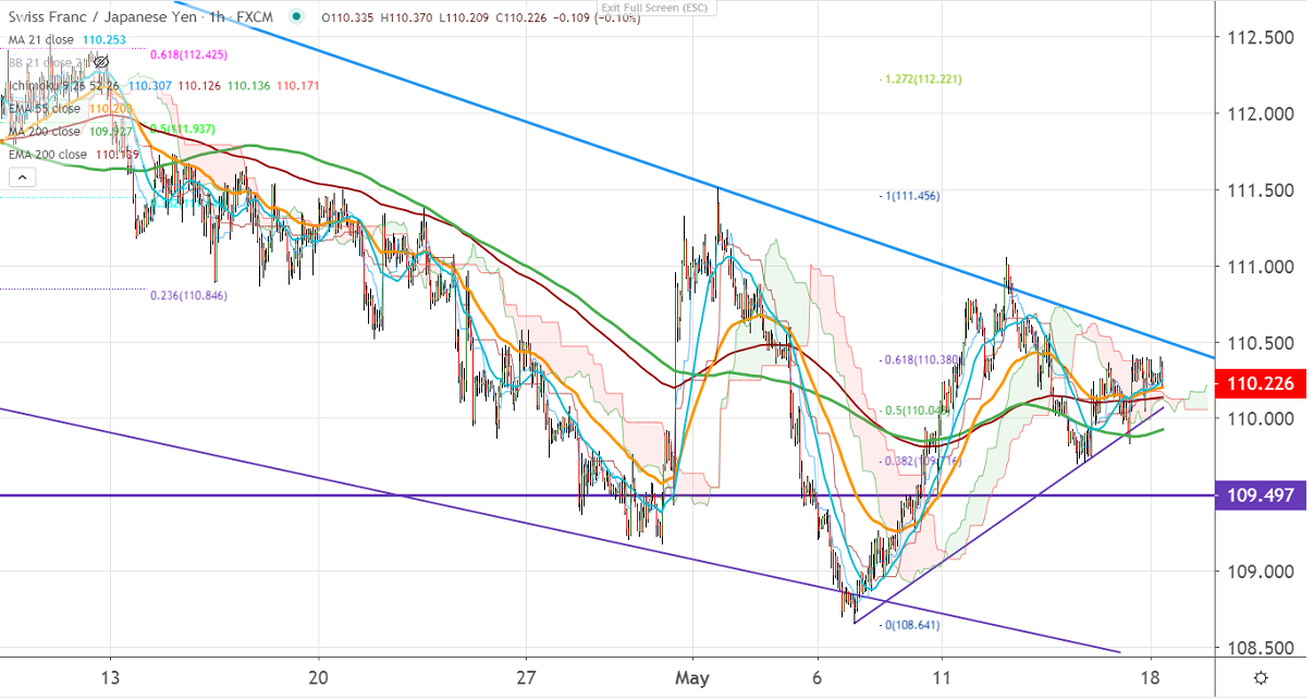 The pair is facing strong resistance at 110.52 (trend line resistance) and hourly close above that level confirms bullish continuation. A jump till 111.05/111.50 is possible. The decline from 113.99 will end at 108.67 only if it breaks 111.52. The immediate support stands at 109.90 (200-H MA) and breaks below ill drag the pair down till 109.50/109.30/108.70.