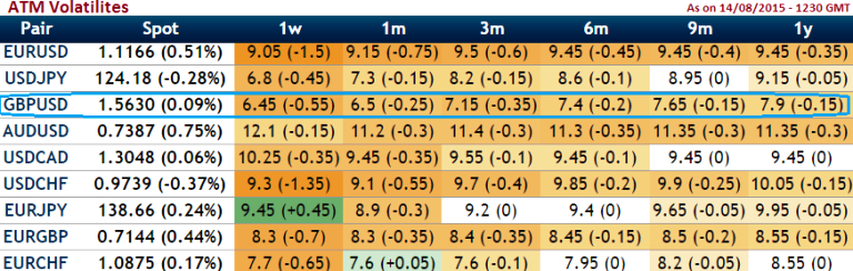 There is no significant news from UK side except CPI and retail sales that could propel GBP for this week and near future GBPUSD may likely to experience low volatility. You can make out from the nutshell; GBPUSD is to have the least IV.