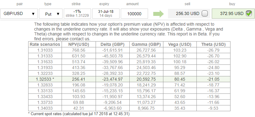 Amid this hedging outlook, 1% out-of-the-money GBP puts of 2w tenors seem to have been exorbitantly overpriced. As you could observe from the above nutshell 2w OTM puts are priced 45% more than that of its NPV (net present value), whereas, 2w implied volatilities of this pair is just shy above 7.40%. Hence, it is perceived as the disparity between IVs and the pricing of optionality.