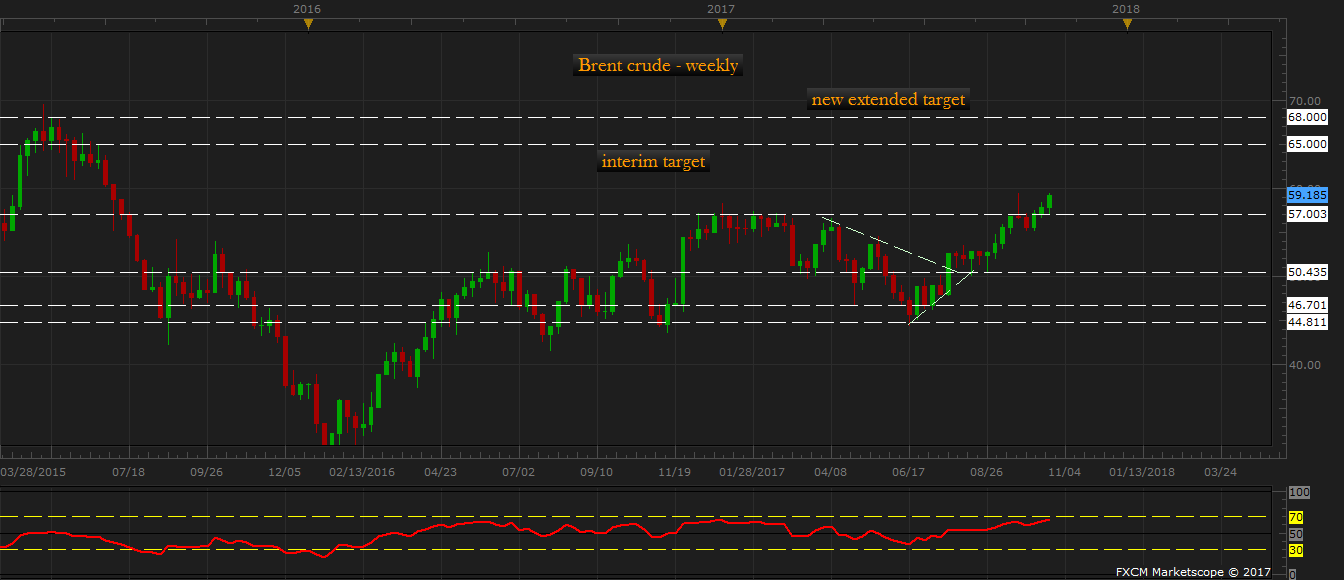 In an article published in late July, named, “FxWirePro: Buy Brent crude targeting $59 per barrel on Saudi export curb and Nigerian ceiling”, available at https://www.econotimes.com/FxWirePro-Buy-Brent-crude-targeting-59-per-barrel-on-Saudi-export-curb-and-Nigerian-ceiling-821113 we recommended buying Brent crude to our readers at the then current price of $50.7 and at dips around $49 and $48.5with an initial target around $59 per barrel and stop loss at $45 per barrel.