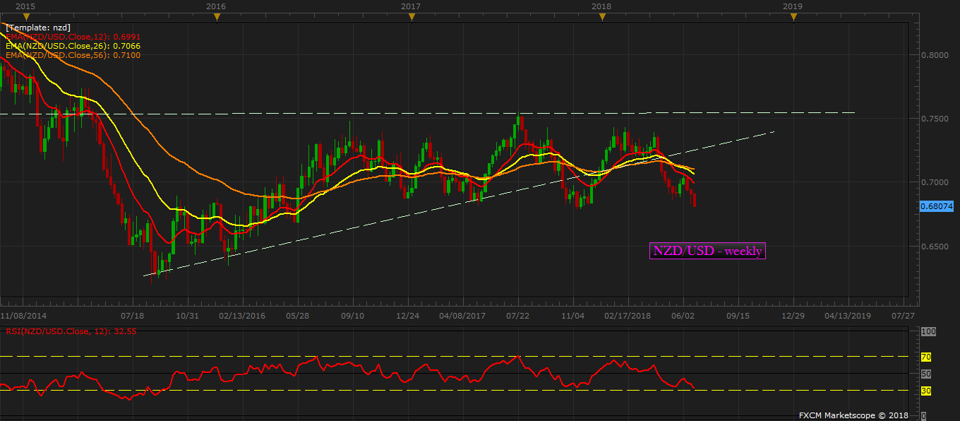 In this review, we based on our latest calculations would like to move the downside target lower to 0.62 area. We expect, the kiwi to test the bottom of 2015 around the price as the strong dollar, trade tensions, and a dovish RBNZ weighs.