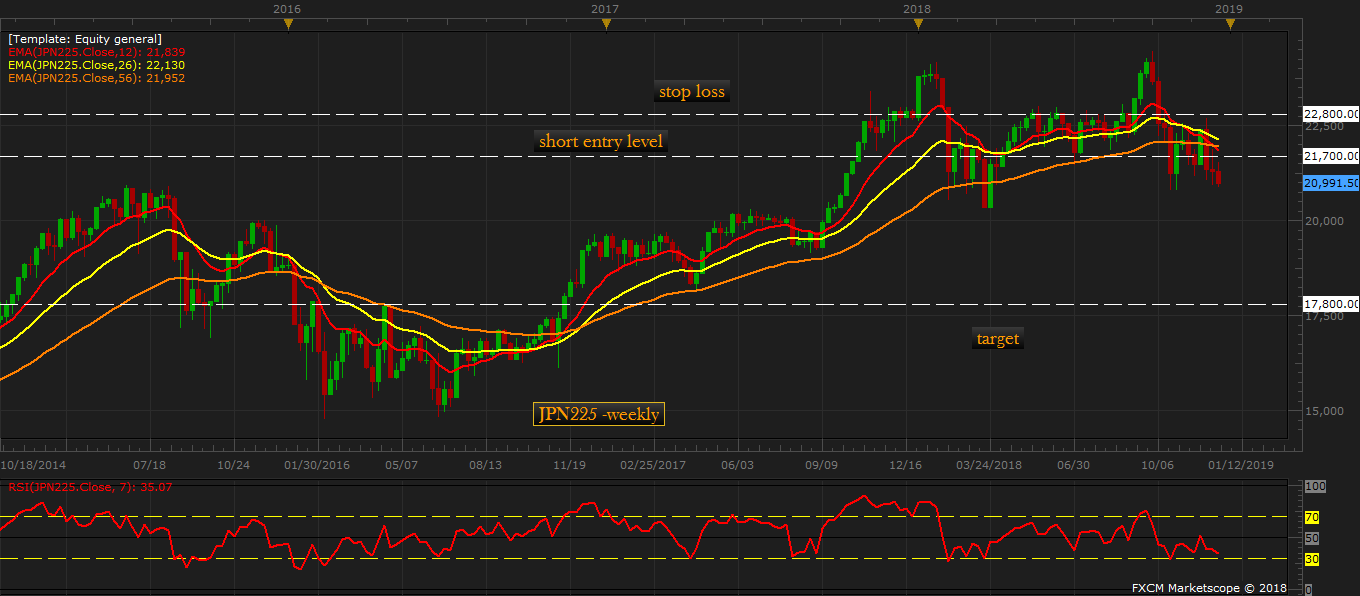 In early December, we have called on our readers to go short on Nikkei at the then current rate of 21700 (JPN225 - CFD of Nikkei225) and at each rally of 100 points with a stop loss around 22800 area and a target around 18200 area, https://www.econotimes.com/FxWirePro-short-term-call-Sell-Nikkei225-targeting-18200-1471747