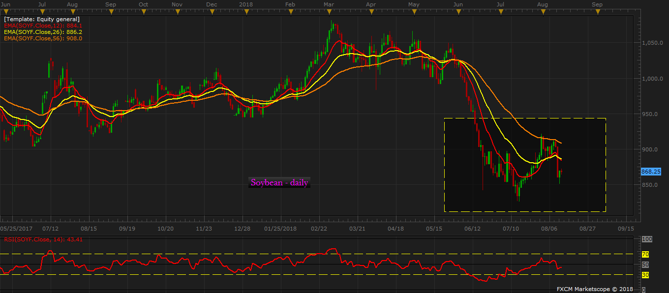 Soybean has reached all of our bearish targets amid trade tensions between the United States and China, which happens to be the biggest consumer of Soybeans and biggest importer of U.S. Soybeans. You can check the call here, https://www.econotimes.com/FxWirePro-Call-Review-Soybean-short-target-further-extended-as-sell-off-intensifies-on-trade-tensions-and-bumper-production-1371629