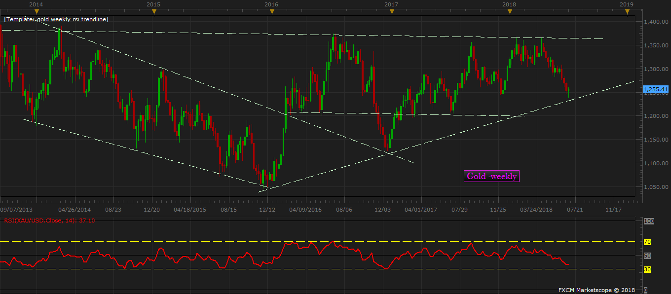 The price of gold has declined steadily after failing to breach the key $1365-85 resistance area earlier this year and is currently trading $1255 per troy ounce. The yellow metal has been testing this resistance since 2014 and has so far tested in seven times; once in 2014, once in 2016, once in 2017, and finally thrice this year between January and March. See chart