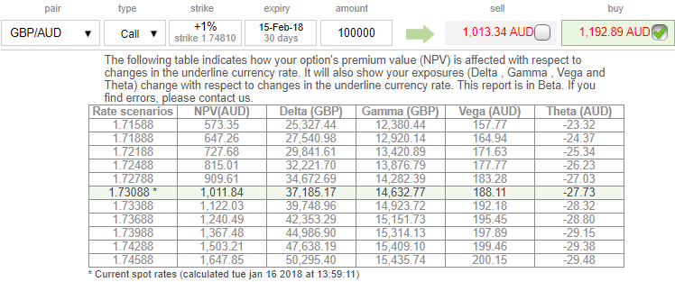 The execution: Initiate long in GBPAUD 3M at the money -0.49 delta put, long 2M at the money +0.51 delta call and simultaneously, short theta in 1m (1%) out of the money call with positive theta or closer to zero.Theta is positive; time decay is bad for a buyer, but good for an option writer.