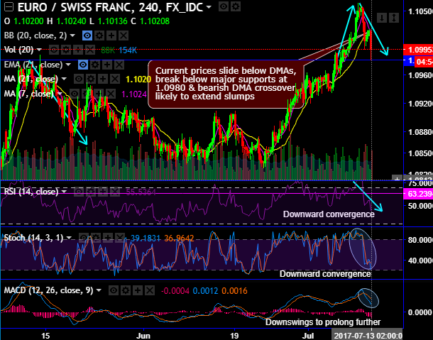 The current prices are well below SMAs on 4H chart, bulls are well above EMAs. While the bears may get active at above-stated resistance levels of 1.1019 levels (i.e. 21SMA) to plummet prices again.