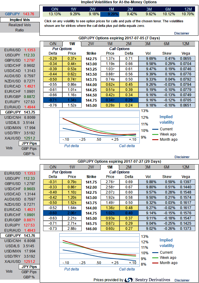 Please be noted that the nutshell showing the positively skewed IVs of GBP against JPY options has been indicating upside risks in short run and downside risks in the weeks to come.