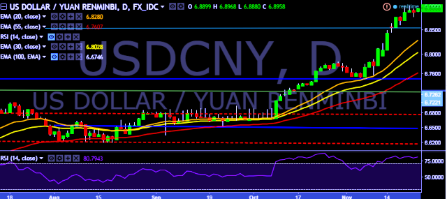 We prefer to take long position in USD/CNY around 6.89, stop loss at 6.87 and target of 6.9224.