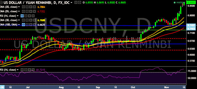We prefer to take long position in USD/CNY around 6.8610, stop loss at 6.8090 and target of 6.8924.