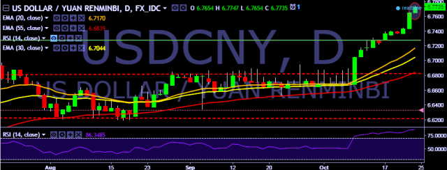 - It made intraday high at 6.7747 and low at 6.7654 levels.