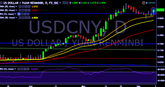 We prefer to go long on USD/CNY around 6.89, stop loss at 6.8731 and target of 6.9330.