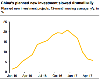Second, the planned new investment has lost steam entering the year of 2017 (refer above chart), suggesting that the public spending has been gradually fading. Over the full year of 2016, the public stimuli had significantly boosted the investment growth, as suggested by extremely elevated investment from SOEs.