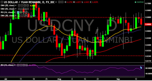 We prefer to take short position in USD/CNY around 6.6750, stop loss 6.6873 and target 6.66/6.6510.