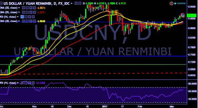 We prefer to take long position in USD/CNY around 6.9100, with stop loss at 6.9057 and target of 6.9198/6.9336/6.9365.