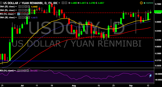 We prefer to take long position in USD/CNY around 6.68, stop loss 6.6710 and target 6.7017.