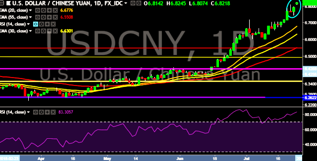 We prefer to take long position on USD/CNY around 6.8050, stop loss 6.7658 and target of 6.8548.