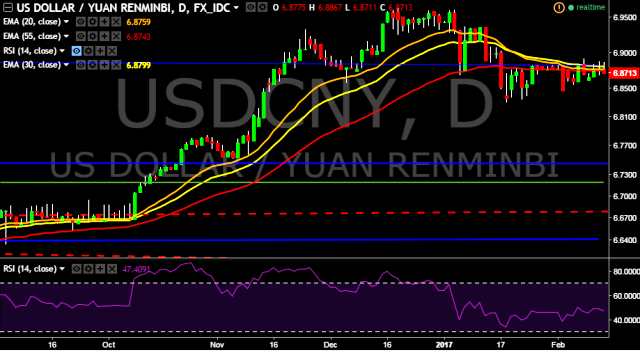 We prefer to take short position in USD/CNY around 6.8750, stop loss at 6.8916 and target of 6.8510