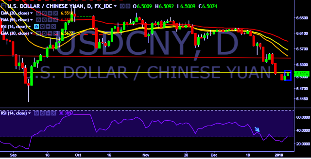 We prefer to take short position on USD/CNY only below 6.5009, stop loss 6.5333 and target of 6.4772.