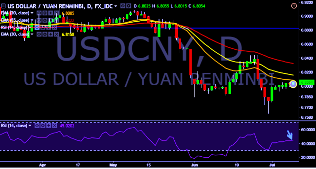 We prefer to take long position in USD/CNY around 6.8010, stop loss at 6.7950 and target of 6.8352.