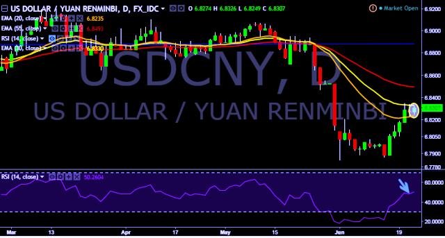 We prefer to take long position in USD/CNY only above 6.8352, stop loss at 6.8174 and target of 6.8526.