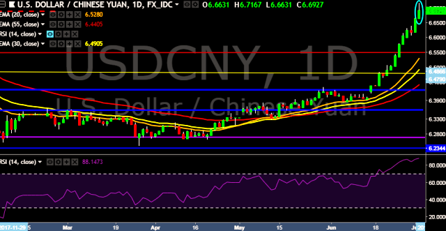 We prefer to take long position on USD/CNY around 6.6880, stop loss 6.6600 and target of 6.7444.