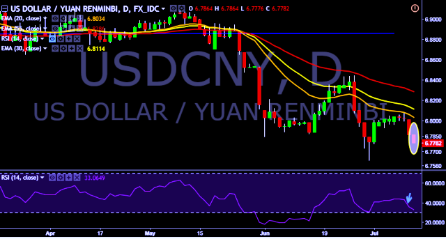 We prefer to take short position in USD/CNY around 6.7820, stop loss at 6.8000 and target of 6.7600.