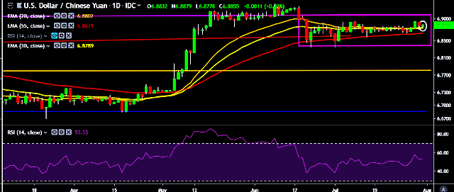 We prefer to take short position on USD/CNY only below 6.8700, stop loss at 6.8950 and target of 6.8492.