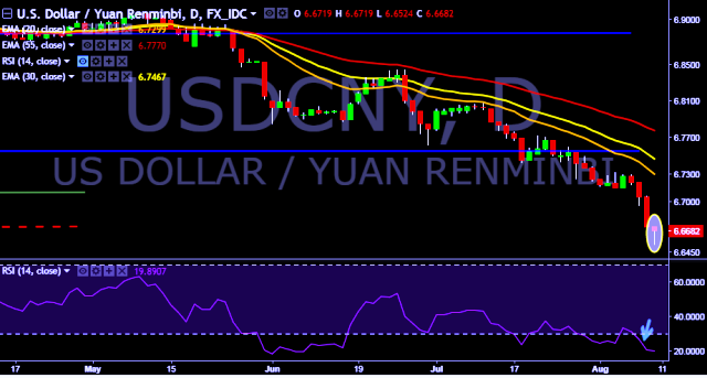 We prefer to take short position in USD/CNY around 6.67, stop loss at 6.7055 and target of 6.6220.