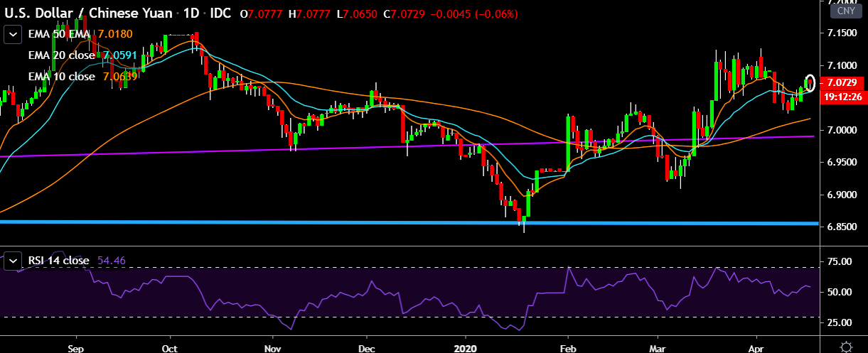 - It made intraday high at 7.0777 and low at 7.0650 levels.