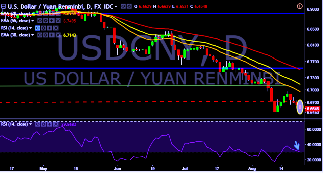 We prefer to take short position in USD/CNY around 6.6570, stop loss at 6.6814 and target of 6.6378.